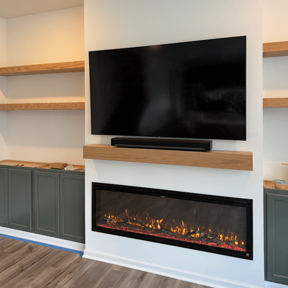 Our custom media walls seamlessly integrate your TV, lighting, shelving, and cable management into one beautiful statement wall.